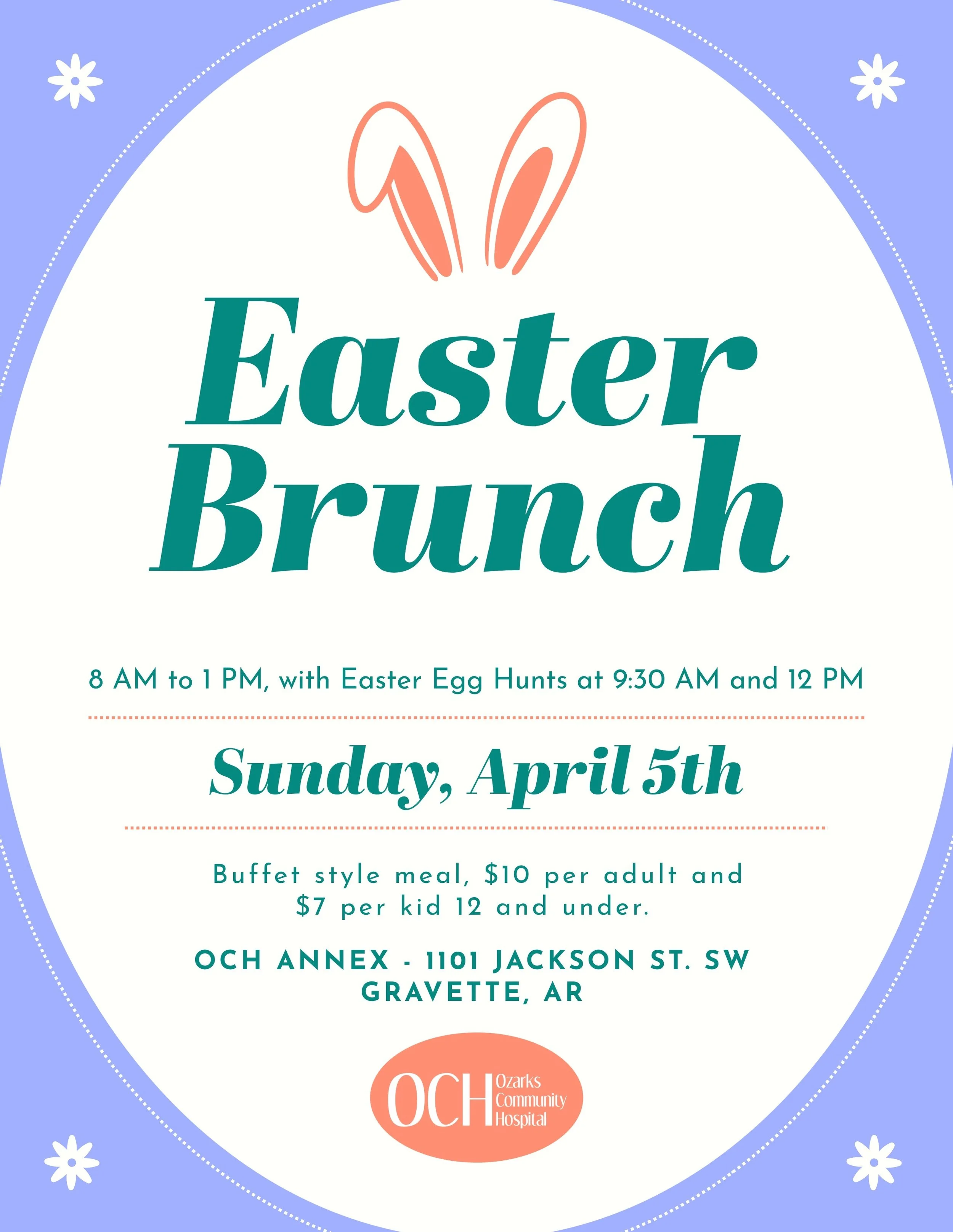 The annual Easter Brunch at the OCH Annex invites families, friends, and community members to come together for a warm and cheerful spring celebration. Hosted by Ozarks Community Hospital, this event combines a delicious buffet‑style meal with classic Easter traditions, creating a welcoming atmosphere designed for guests of all ages. Taking place at 1101 Jackson St. SW in Gravette, Arkansas, the brunch is held from 8:00 AM to 1:00 PM, offering plenty of time for families to enjoy a relaxing and festive morning.